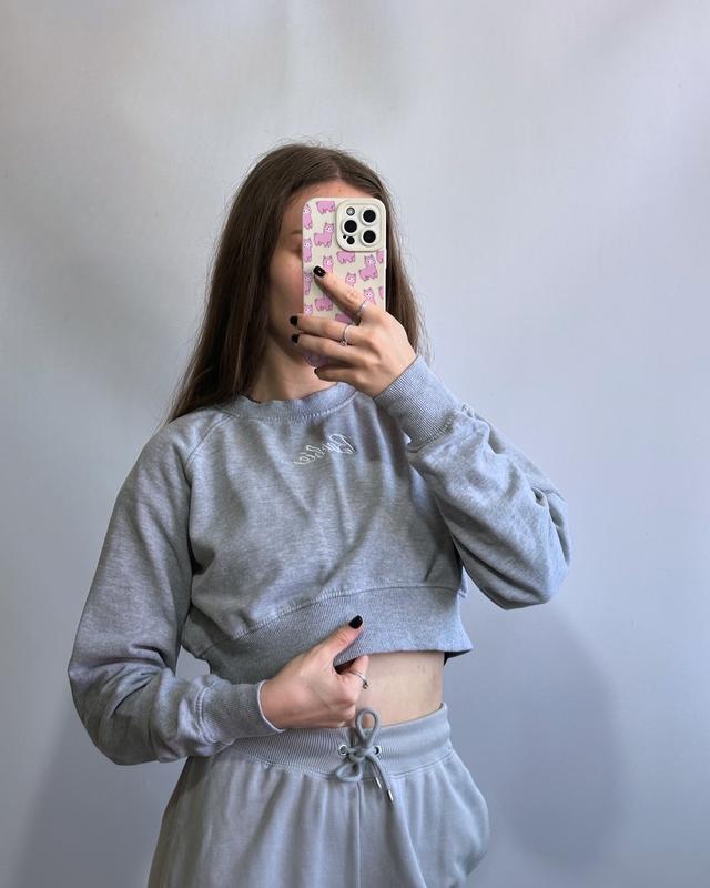 Свитшот серого цвета, вышитый центр лого ~размер XS/S ~стан 10/10