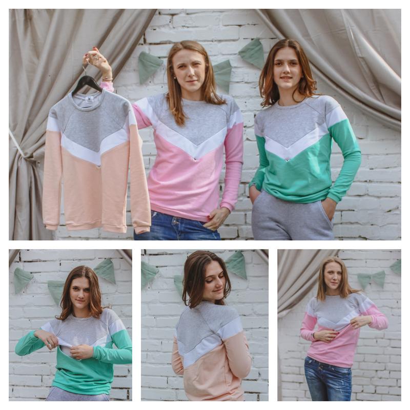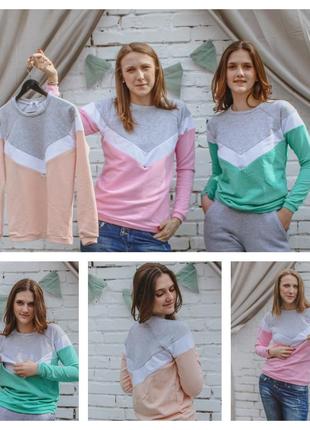 Удобный свитшот, из 3-х нитки. Доступен в 3 цветах. - Розовый - Пудра - Мята Размеры: XS S M