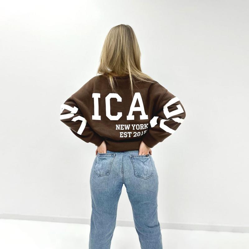 Это классический спортивный худи фасон оверсайз. Не смотря на свободный крой, такие модели выглядят очень женственно и изысканно. К особенностям худи относятся: - сезон осень/зима; - длинные просторные рукава с широкими манжетами; - спущенная линия плеча; - большая надпись "Chicago", выполненная на спине изделия; - круглая горловина; - материал – утепленный трикотаж (тринитка) с флисовым начесом. Материал: тринитка на флисе Размеры: 42-44, 46-48, 50-52 Измерения: Длина худи: 63-65 см Длина рукава от горловины: 65-67 см. Цвета: графит, зеленый, черный, шоколадный, молочный, розовый Отправка только новой почтой и укрпочтой. код 4167