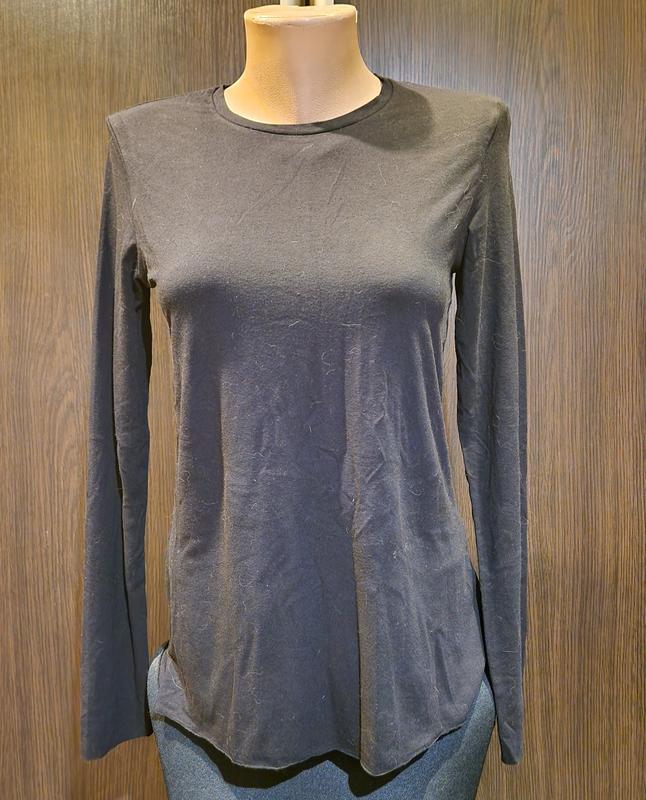 Базовый брендовый лонгслив! Cos! Трикотаж средний, хорошо тянется, край на рукавах и по низу не обработан. Размер S. Хорошо подойдет под жакет. Замеры: ПОГ 44 см., ПОТ 41 см. ПО низу 48 см., рукав 64 см., плечо 11 см., плечи по спинке 36 см., длина 66 см., ПО по бицепсу 14 см.