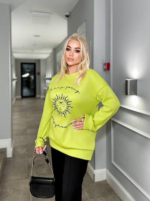 Свитшот-туника Модель :372 Тканина : трьох нитка Размер : 42-46,48-52 Цвет: белый,салатовый Цена : 1080грн