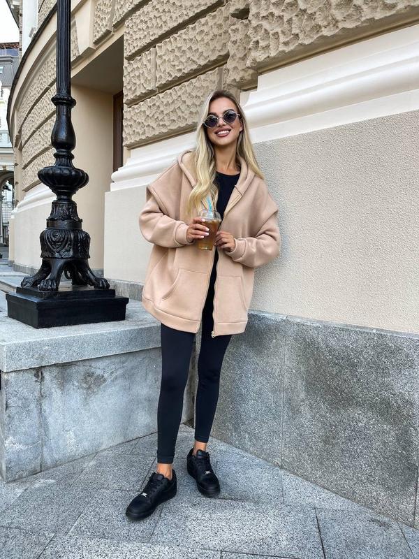Стильное худи, согреет вас этой холодной осенью и добавит стиля в ваш образ Ткань: турецкая трехнить на флисе Размер: единый 42-50 Цвета: беж, черный, серый, голубой, молочный, серо-голубой, мокко