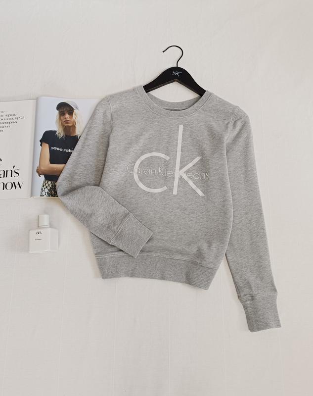 🌿серый свитшот Calvin Klein с манжетами, ткань не утепленная 60% коттон, 40 полиэстр Размер:XS Замеры:ПО груди 45 см, длина 54 см, рукав от горловины 65 см