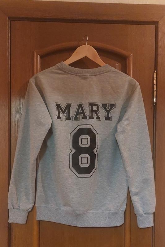 Свитшот в идеальном состоянии серого цвета с надписью на спине. Ткань не толстая, приятная к телу.Имает растяжку длиж. ног. рукав плечи