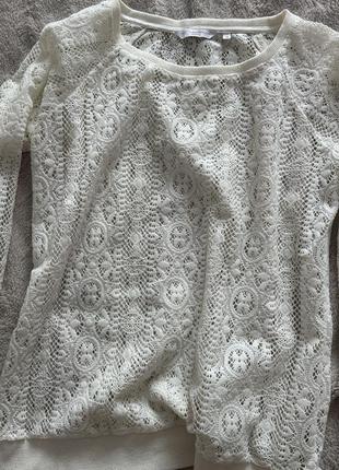 Очень красивый свитшот, кружево, на ощупь бархатистый, теплый.