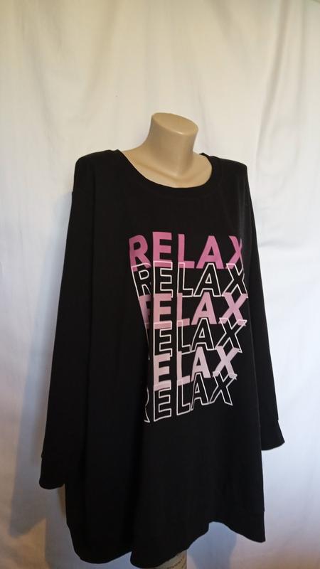 свитшот большой размер, насыщенный черный цвет, длина85, пог76в спокойном состоянии и тянется80-82,рукав от горловини76,ширина по низу резинка трикотажная 77-80 и тянется больше,двинитка,стан новой вещи