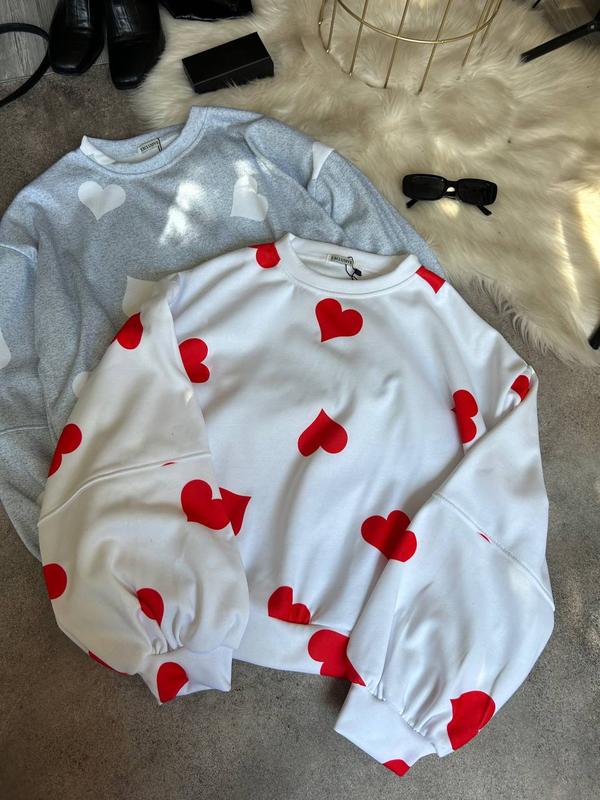 🥀Новинка🥀 ФОТО Реал⚠️ Свитшот сердечки❤️ Код 190 Ткань: трехнит на флисе Цвета: серый меланж, белый Размеры: 42-46 Универсал 💵новая Цена 730 грн 🔥 Объемная теплая кофтина, идеальная по сезону. Качественная накатка. Приятная мягкая к телу ткань. код20-2105(ТРус)