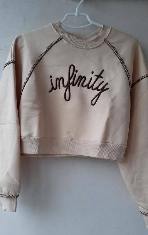 Утепленный свитшот с вышитой надписью на флисе, укороченный крой, низ и рукава обшиты манжетами из рибаны. Размер L, длина 49 см, ширина под проймами, нал грудью 56 см, длина рукава от горловины 76 см, длина рукава по внутреннему шву 47 см, по талии 51 см. Свитшот в идеальном состоянии. Ткань трикотаж 2-нить с начесом, состав 100% хлопок. Страна производитель Турция.