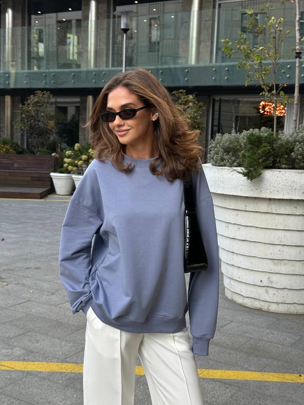 Свитшот "Дрим" Свитшот оверсайз формата, манжеты выполнены из кашкорсе Размер: универсальный 42-46 (под заказ можно 40-42; 48-52 размеры, ждать 2-6 дня, +200 грн) Ткань: двухнить качество пенье, кашкорсе Цвет: красный, молоко, серо-голубой Уход: ручная стирка до 30° Производство: Украина ______________________ Длина изделия по спинке - 68 см Объем груди до 110 см Объем талии до 100 см Длина рукава - 57 см Плече - 20 см