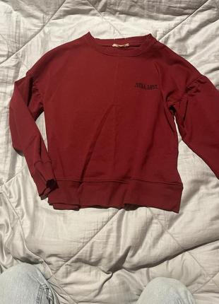 Свитшот приятный к телу, состояние идеальное, резинки не растягиваются, на резинке возле горла и на рукавах выполнены надрезы, надпись вышита