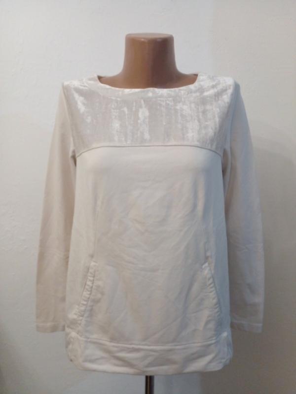 Демисезонный, комбинированный бархат+ трикотаж хлопок, фасон трапеция, цвет тофа( разновидность клонированного белого).Размер по наборке С. Цена в оф. магазине подобных 6000-7000 гривен. Без торгу плечи-38 пог-50 поб-52-56( складки встречные на спине) рукав-60, бицепс-16-17 длина-62-70( спинка)