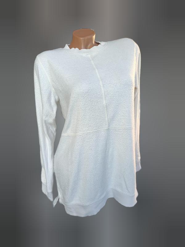 Хорошая кофточка как для ходьбы на каждый день, так и для сна. Состояние как на фото, без дефектов. Цвет приблизлен к молочному. Страна производитель Бангладеш Ткань 96% коттон, 4% полиэстер Размер 46-48