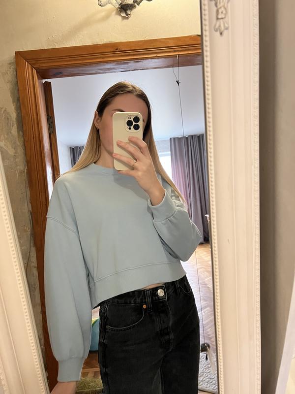 світшот без флісу вкорочений , з трьохнитки,ідеальний стан ,ніжний голубий колір