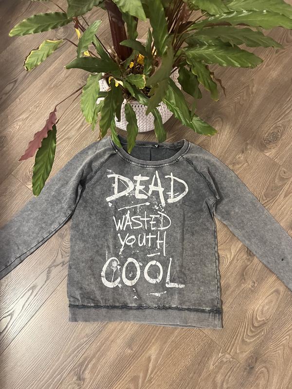 Жіночий світшот в розмірі L ( є недолік на останньому фото) Склад: 100% котон Довжина 64 Бюст 51 По лінії низу 47 Рукав від горловини 73
