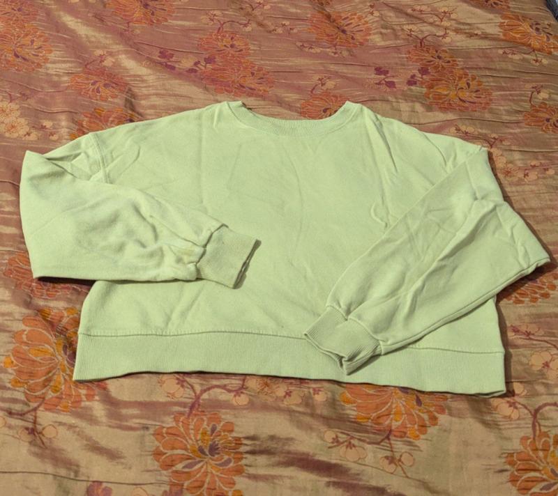 Кофтинка салатового кольору в нормальному стані, одна плямка на спині видно на фото Плечі 60 Довжина 46 Рукав 45 Ширина 50