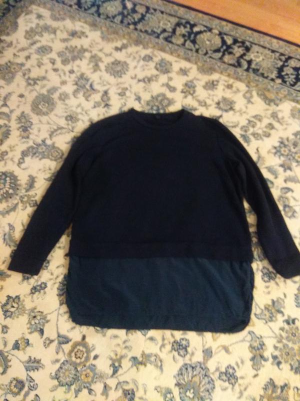 Свитшот свитер кофта COS хлопок с начёсом и натуральный шелк.Теплый и практичный. Шелк можно подвернуть .Общая длина от плеча 77 см, длина шелковой части 16 см от края свитшота.ПОГ62 см, длина рукава от плечевого шва65 см.