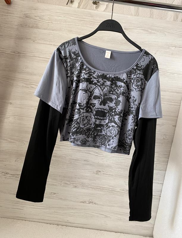 Свитшот Romwe,размер указан «XL”,подойдет на «М»,»L”,ориентируйтесь на замеры.Длина-42см,плечи-43см,рукав-62см,обьем груди полуобхват в нерастянутом виде-52-58см,ширина внизу полуобхват в нерастянутом виде-45см.
