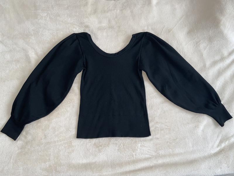 Черная кофточка в рубчик с широкими рукавами, размер М, подойдет на L