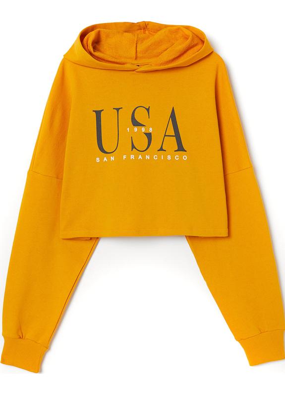 Свитшот из легкого футера с принтом. Свитшот укороченный и довольно свободный. Длинный рукав и широкая трикотажная резинка по вырезу горловины, низу рукавов и нижнему краю. XS Обхват груди - 102 см 0700946_19