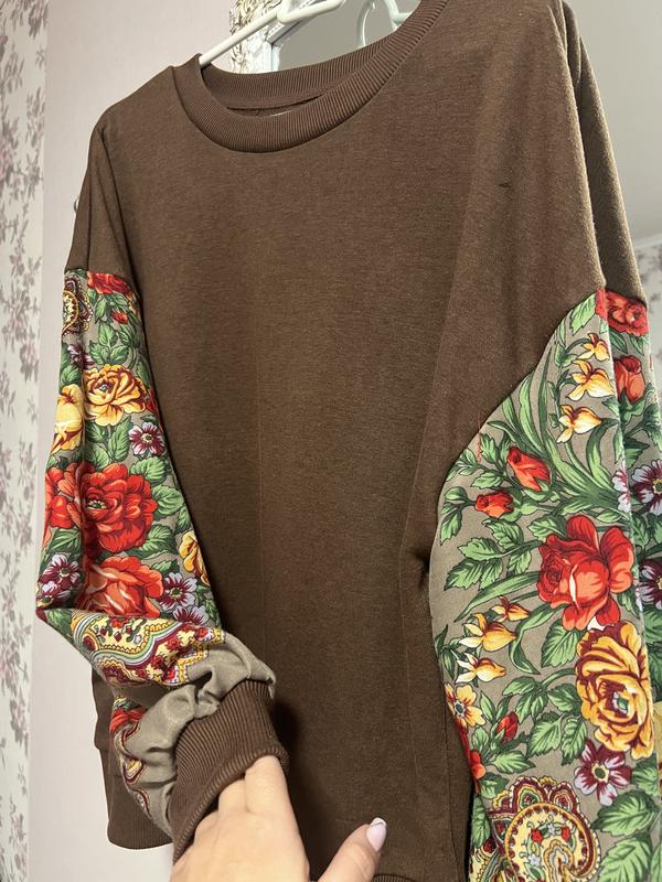Свитшоты новые,эксклюзивная вещь,такой точно ни у кого нет) красиво декорирован под украинскую тематику,декор это ткань,ная накатка!есть еще черные и коричневые,все различные, равномерные нет,профессиональный пошив Размер оверсайз от 42 до 52 включительно На легком утеплении Можно заказывать любой цвет, с утеплением и без,декор подбирается индивидуально к каждому отдельно Худи 1200 Свитшот 950