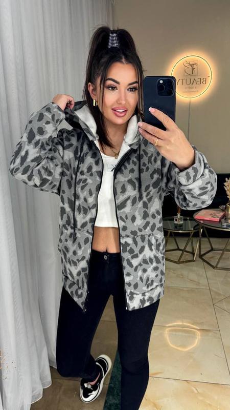 Теплый батник на молнии с капюшоном в трендовый леопардовый принт. Модель:3089 Размеры: (42-44-46),(48-50-52) Кольори: в асортименті Ткань: трехнитка с начесом (Турция) Замеры: 💛Обхват груди (42-44-46)-120см (48-50-52)-128см 💛Обхват талии (42-44-46)-100см (48-50-52)-108см 💛Длина (42-44-46)-72см (48-50-52)-78см 💛Рукав (42-44-46)-73см (48-50-52)-76см