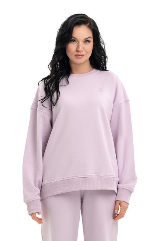 Свитшот женский оверсайз, хлопковый, трикотажный, без утепления, сиреневый