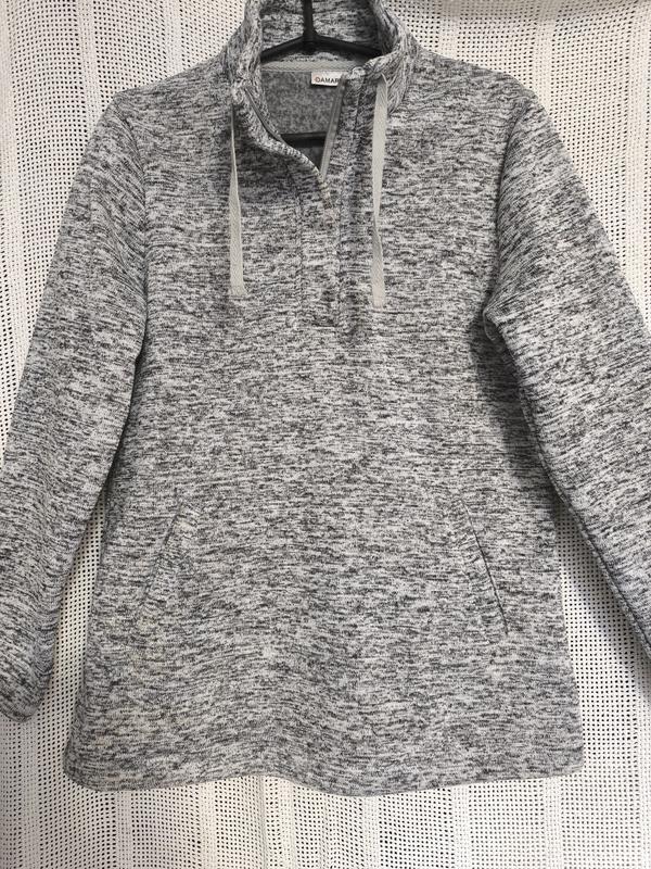 Сіра тепленька кофта. З середини присутній утеплювач. ПОГ 49 см, ПОТ 48 см, ПОБ 54 см. довжина 69 см, довжина рукава 59 см.