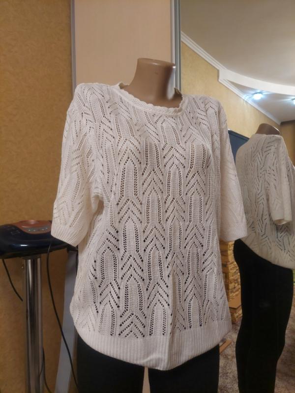 ЖІНОЧА АЖУРНА ЛЕГКА КОФТИНКА З КОПОТКИМ РУКАВОМ ДОВЖИНА ВИРОБУ 60 СМ . ШИРИНА 55 СМ .