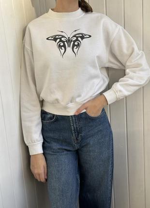 Світшот, худі, кофта h&m, жіноча, білого кольору, з метеликом, утеплена, матеріал бавовна,...