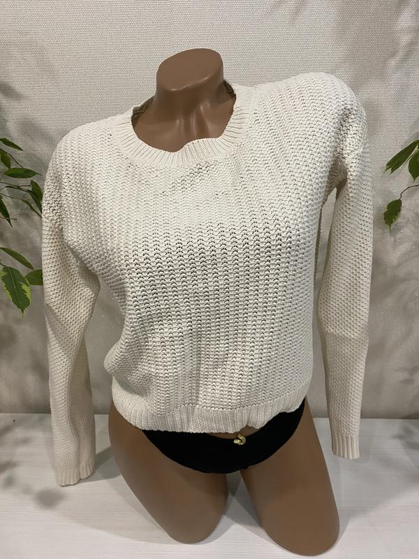 Молодежный укороченный свитшот молочного цвета, фасона оверсайз очень приятная к телу, ткань, в составе 60% хлопок Базовая модель, подойдет ко многим образам, особенно к вещам с завышенной талией (брючки, юбки) Состояние без дефектов и нюансов Параметри манекену: 90/60/90 Отлично подойдет от XS до М, в зависимости от желаемого результата Замеры: Длина от плеча - 47 ПОГ - 51 Ширина по низу - 43 Длина рукава от горловины - 70 Тканина тягнеться