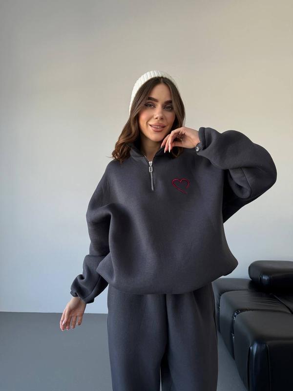 Модель : 099 Світшот з вишивкою з теплої трьохники Теплих речей багато не буває 🤭 Штани також можна придбати окремо Тканина : турецька трьохнитка Піньє Колір : чорний , графіт , молоко Розмір : S - L 🏷️ Ціна штанів : 999 грн