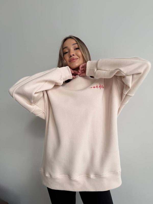 Свитшот Модель 302 Цвет: черный,молочный Состав: 95% коттон, 5% ликер Ткань: турецкий трикотаж на флисе Размер: one size LL ОГ 126 см Плечи 69 см Длина 75 см Длина рукава от плеча 50 см *Лосини 303