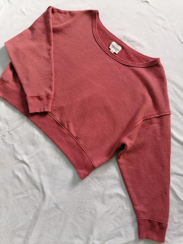 Стильный укороченный оверсайз оверсайз терракотового цвета. Широкий вырез горловины, спущенная линия плеча. Необработанные открытые швы, плотный материал. Написанный размер S. Подойдет на больший размер. Замеры: Длина 55 см Рукав от горловины 68 см Груди 64 см Низ 54 см На все вопросы с радостью веповым, при необходимости пришлю дополнительные фото и замеры. ✅Подписывайтесь на страницу, регулярно добавляю обновочки. ✅Ставте ❤️, чтобы не потерять понравившуюся вещь и не пропустить акций предложения. ✅Постоянным клиентам скидки 🤗