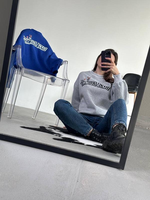 Фото реал 🔥 Свитшот Bugs Bunny Ткань: трехнитка флис Размер:42-46 (S-M) Цвет:темный электрик, меланж Мягенький и Тепленький, свитшот с качественной накаткой🔥 обязательно должен быть в твоем гардеробе🔥 Манжеты и ворот, выполненные из рибаны 💕