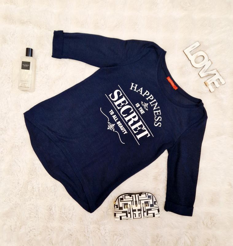 Легкий свитшот в красивом синем цвете с интересной надписью от бренда Ostin. Размер - S. Стан идеален.