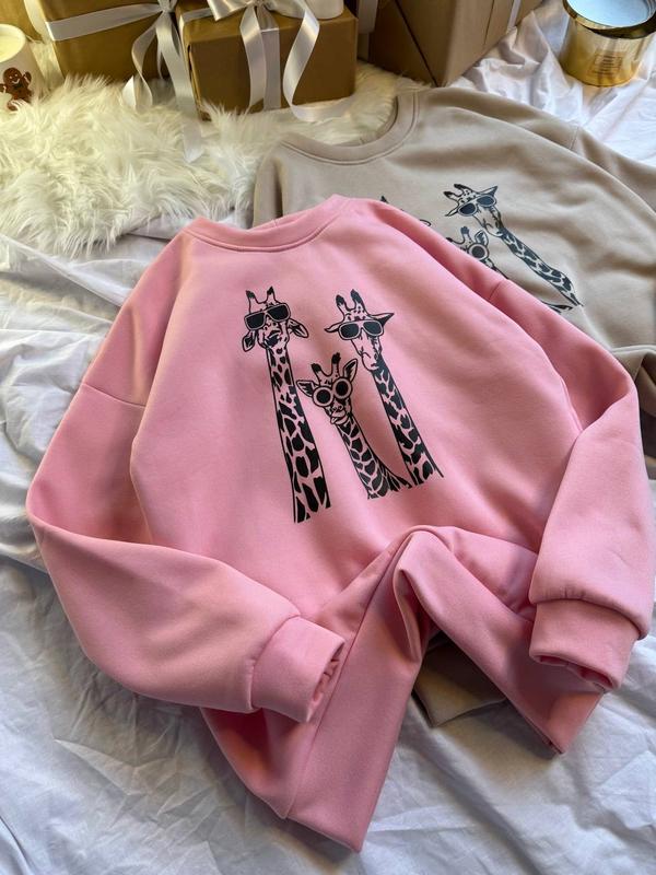 Свитшот 🦒🦒🦒 (Фотто приема) Прикольный принт всегда привлекает внимание, добавляет индивидуальности и стиля вашему образу, делая каждый день ярче и незабываемым 🟠Мод: 7806/2 🟠Ткань: трехнитка на флис 🟠Цвет: бежевый и розовый 🟠Размеры: 42-46