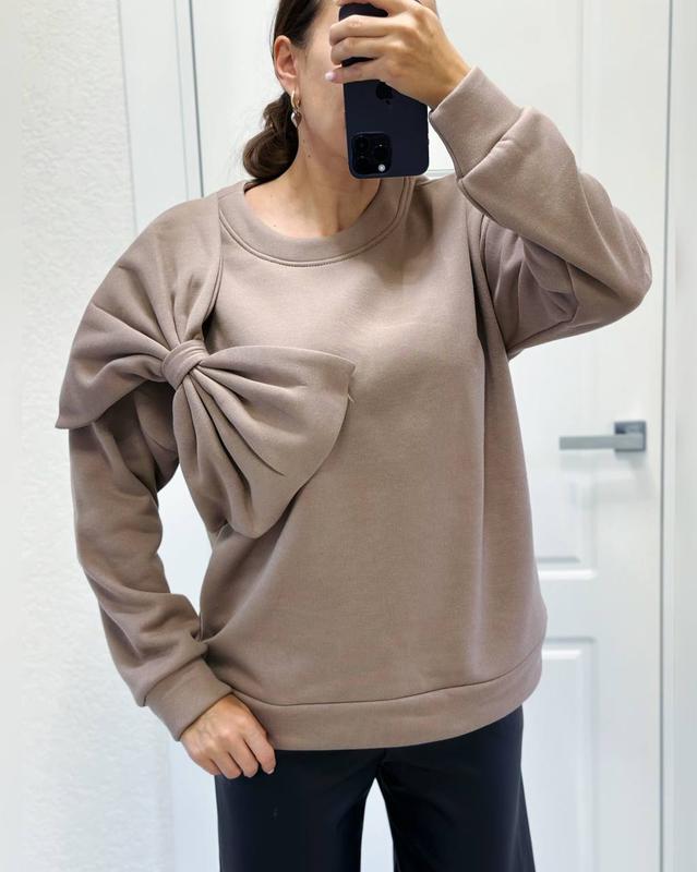 Свитшот Модель 893 /1893 Размер 42/46 и 48/52 Ткань трикотаж теплый трехнит Цвета: молоко, беж, черный, красный, голубая Стильный трендовый свитер с декоративным бантом спереди Крой оверсайз Низ та рукава на манжет 😍Замеры: ПОГ 58см /62см, длина 68см/70см В Батале белого нет