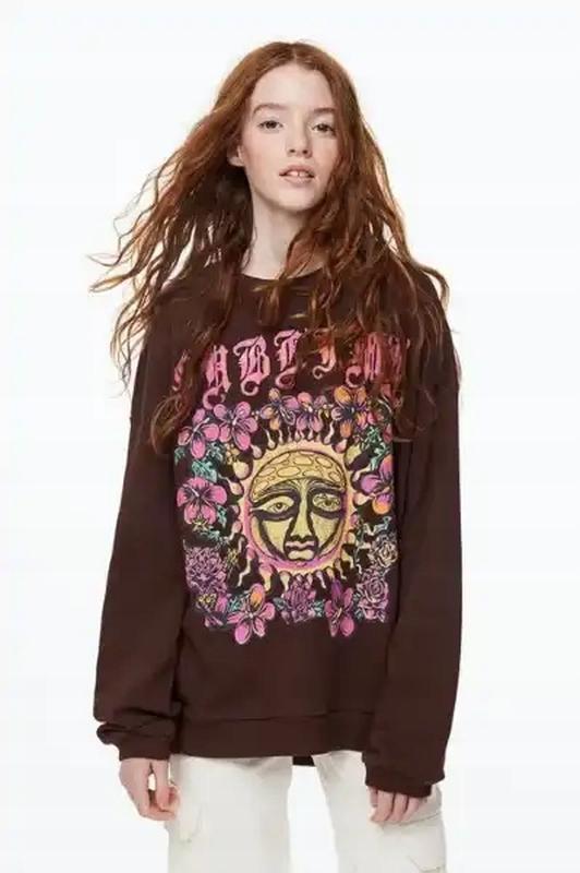 Свитшот от h&m шоколадного цвета с оригинальным узором, в идеальном состоянии. Не смотря на то, что указатель подростковый размер EUR 158/164 US 16/18 UK 12-14Y, хорошо подойдет на взрослого человека, на размер S (оверсайз) или М. Ориентируйтесь на замеры (на фото). Материал: 69% - хлопок, 31% - полиэстер.