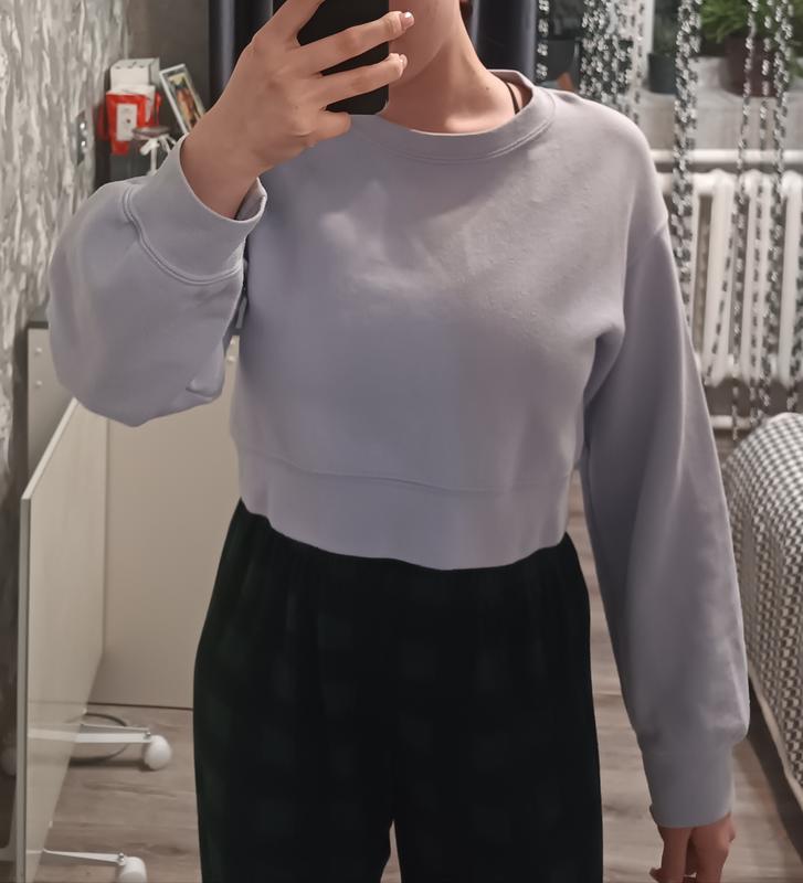 Женский укороченный свитшот базового кроя с длинными объемными рукавами. Цвет - светлый лавандовый, материал мягкий и приятный на ощупь. Подходит для повседневной носки Длина: 43 см Ширина: 46 см.