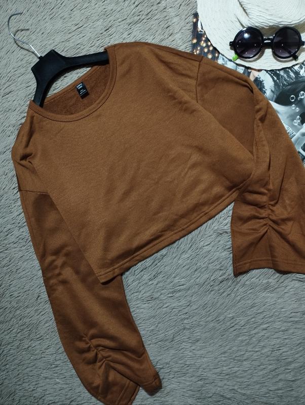 В отличном состоянии. Крутой оверсайз-свитшот с интересными рукавами. Тканина - двохнитка, тягнеться. Размер 14/42/XL, но смотрите по замерам Замеры (полуобхват): Груди 60 Рукав от горловины 73 Длина от плеча 39