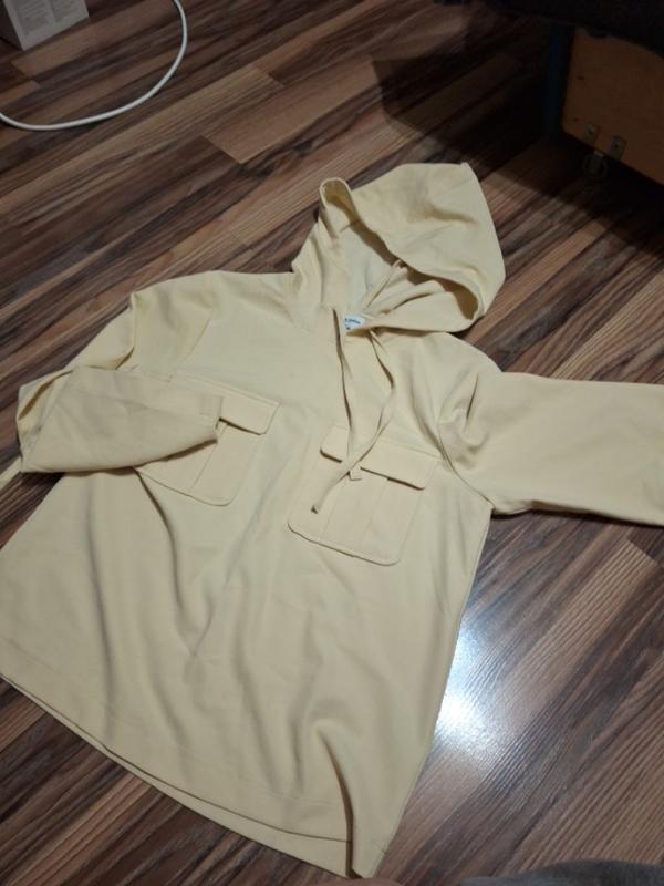 34 размер, капюшон большой и свободный на затяжках, настоящие карманы на груди. рукава свободны и также на затяжках