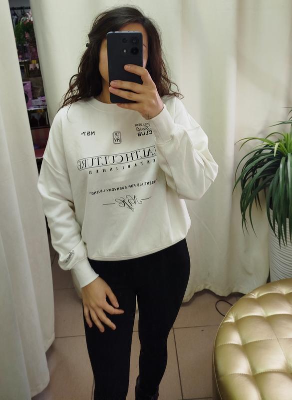 Свитшот H&M с круглым вирозом,низкую спущенными площадками и длинными рукавами, резинки на манжетах. Размеры S,L