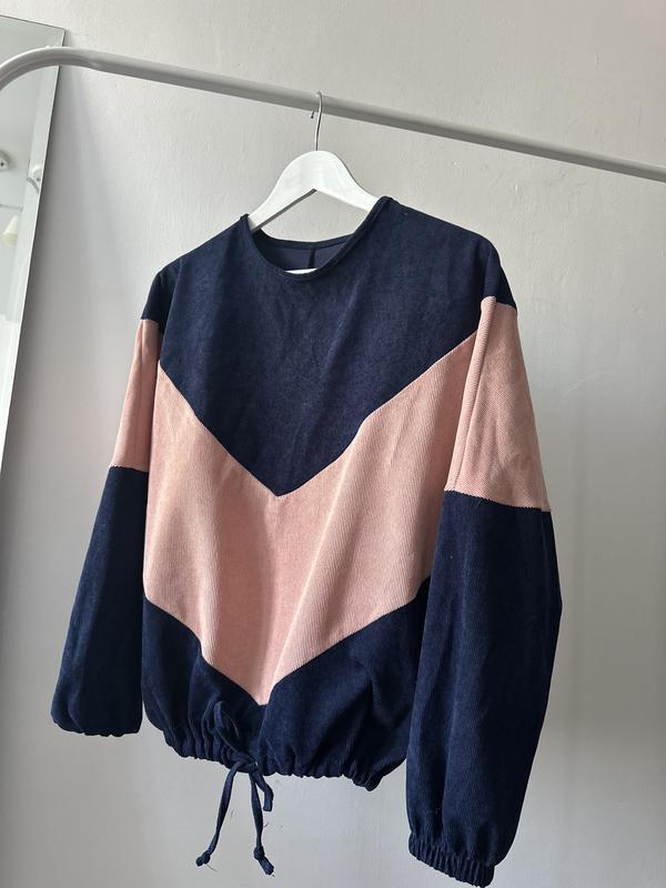 Сине-розовый свитшот, затягивается как вам удобно Размер м Ог 55 см, длина 61 см, рукав 59 см