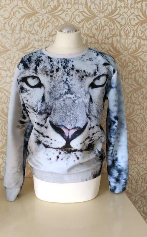 Свитшот/свитер/кофта С животным принтом (семейства кошачьих) Размер М Трикотаж Полиэстер Бренд (надо посмотреть)