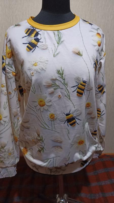 Свитшот с эффектом 3д нежно-молочного цвета. Замеры: длина по спинке -65см, длина рукава от горловины -72см, пог-54см, к низу прямой.