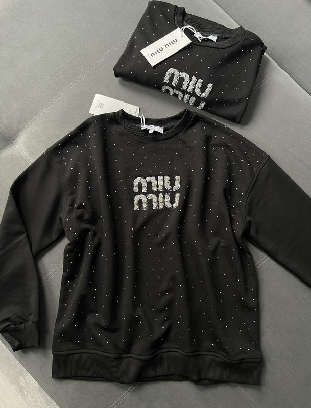 Стильный свитшот в стиле Миу Производитель Турция. Тканина :двонитка петля Свитшот декорирован камешками, которые надежно приклеены и не отпадают. Размер СМЛ Стирка на деликатном режиме. Замеры: С размер Длина 62 см Ширина полу охват 58 Рукав от горловины 70 М размер Длина 63 см Ширина под мышками полуобхват 58 Рукав от горловины 70 см Л размер Длина 64 Ширина полуобхват 60 Рукав от горловины 72 см