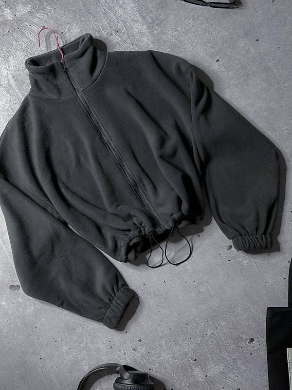 Объемный флисовый бомбер на молнии Ткань: флис двусторонний Размер: 42-48 (универсал) Цвет: графит