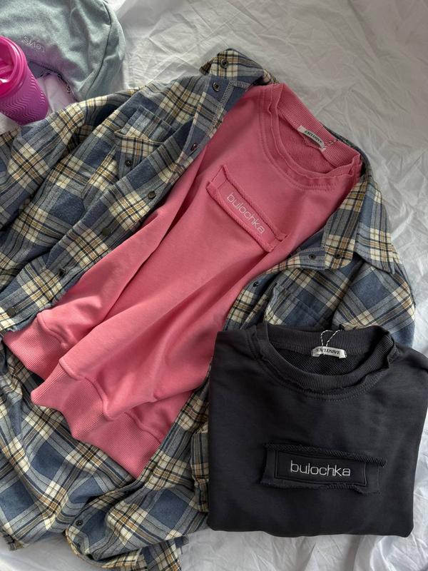 💕 Bulochka 💕 Код 12386 🔹Ткань: петля Турция 🔹Цвет: графит, розовый 🔹Размер: 42/46 one size ❗️Качественная ткань которая не кашлатится и не теряет цвет. На рукавах, горловине и низ свитшота выполнен из рибана кашкорсе. Лаконичный дизайн с надписью “Bulochka” на груди добавляет элементы современного уличного стиля и помогает выразить индивидуальность.
