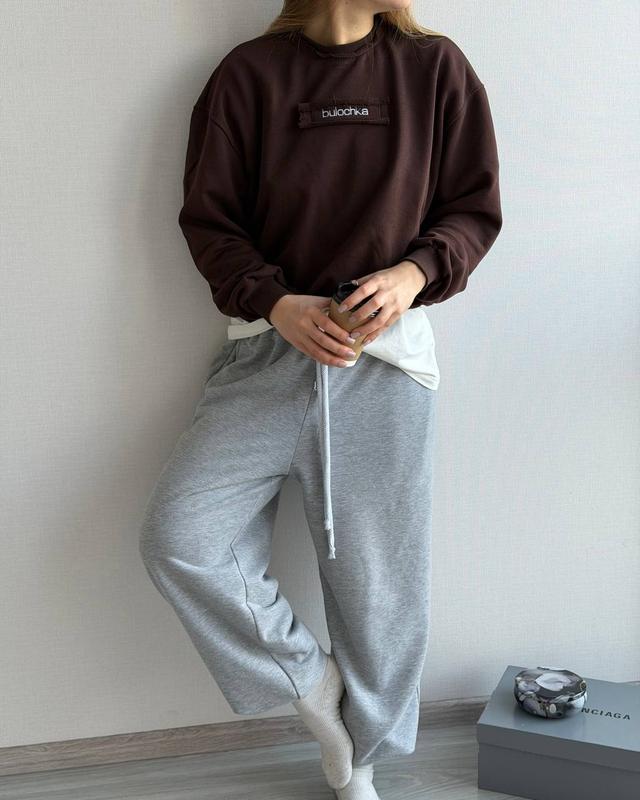 💕 Bulochka 💕 Свитшот Код 386 🔹Ткань: петля Турция 🔹Цвет: шоколад 🔹Размер: 42/46 one size ❗️Качественная ткань которая не кашлатится и не теряет цвет. На рукавах, горловине и низ свитшота выполнен из рибана кашкорсе. Лаконичный дизайн с надписью “Bulochka” на груди добавляет элементы современного уличного стиля и помогает выразить индивидуальность. Его можно носить как для прогулок по городу, так и для встреч с друзьями или для отдыха дома. Выбор цвета позволяет подобрать именно тот, который лучше всего подходит к вашему стилю 🍭💕🛼