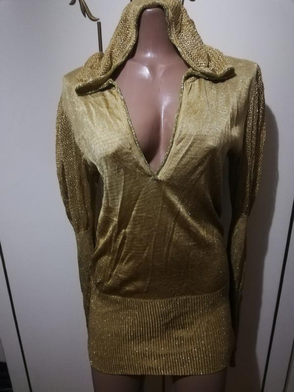 Продам золотую, нарядную, с капюшоном тунику. Капюшон и верх рукава вязанный стрейч.